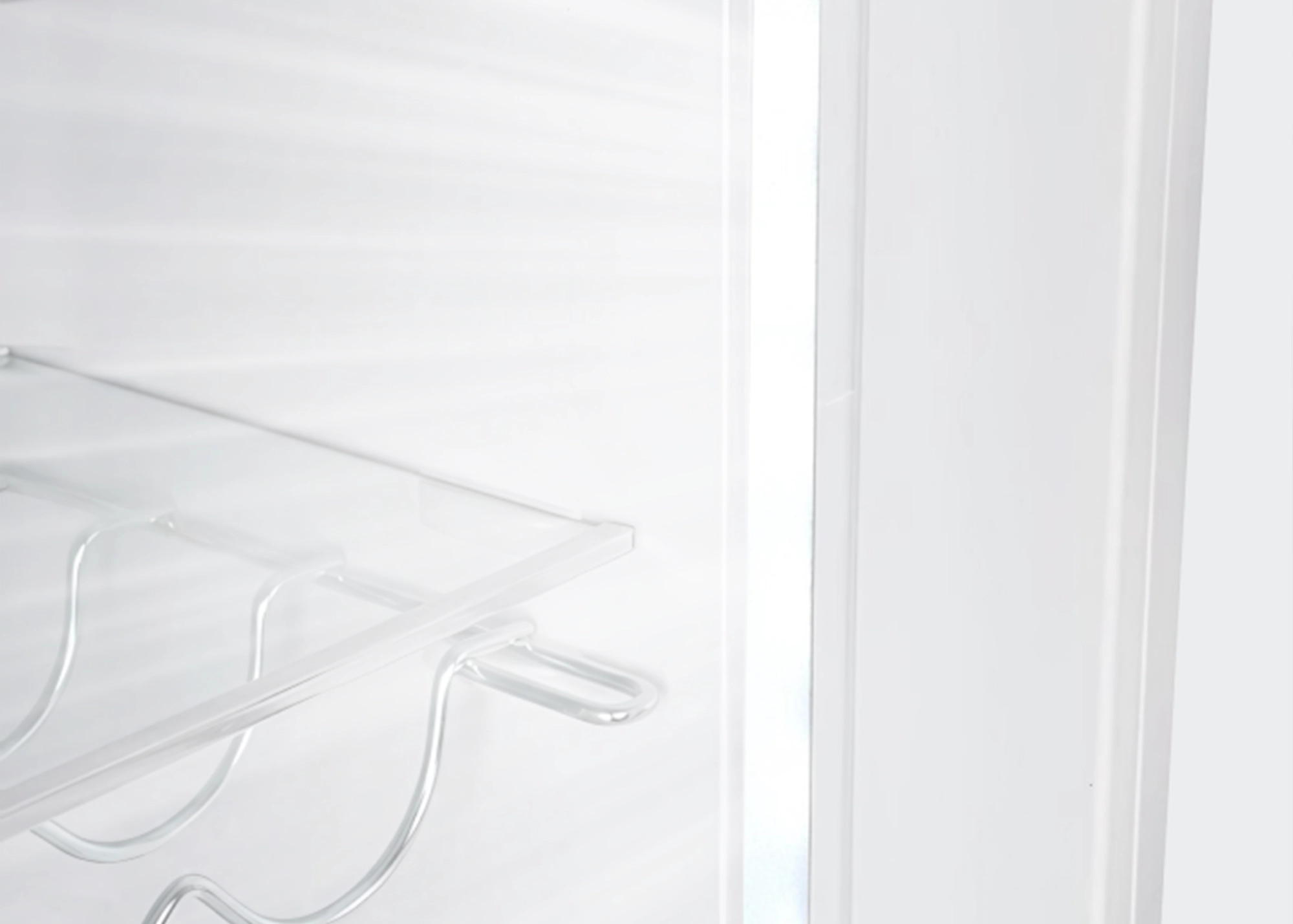 Всередині холодильника м'яке і приємне світло. Воно не сліпить очі при відкриванні холодильника вночі, крім того освітлення в холодильниках DAEWOO спроектовано так, щоб забезпечити високу видимість на кожній половині камери. Для цього використовуються не точкові, а продовгуваті плафони оптимальної потужності.