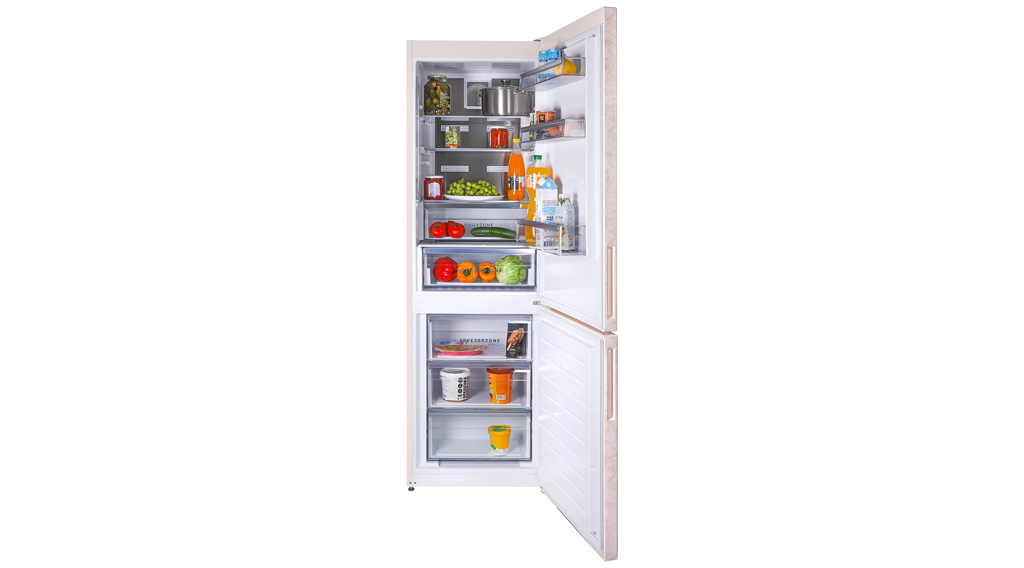 Холодильники серії FKM оснащені двома спеціальними відділеннями для кращого зберігання ваших продуктів. DAILYZONE. Підтримує температуру на нульовій позначці для більш тривалого зберігання продуктів (м'ясо, риба). OPTICRISPZONE. Має підвищену вологість у контейнері, і в першу чергу адаптована для зберігання овочів та фруктів. Але завдяки регулюванню вологості вона з легкістю перетворюється на DAILYZONE