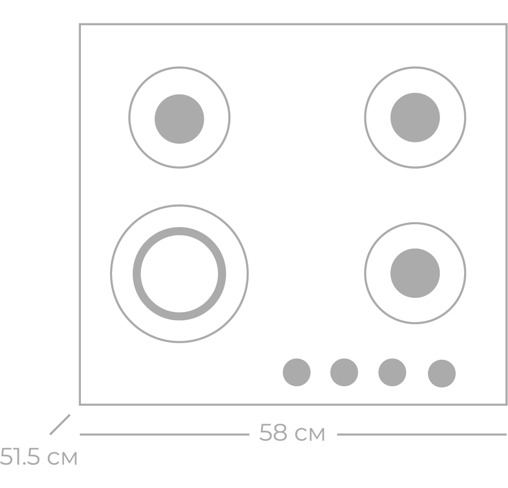 - Тип зон нагрівуГазові конфорки